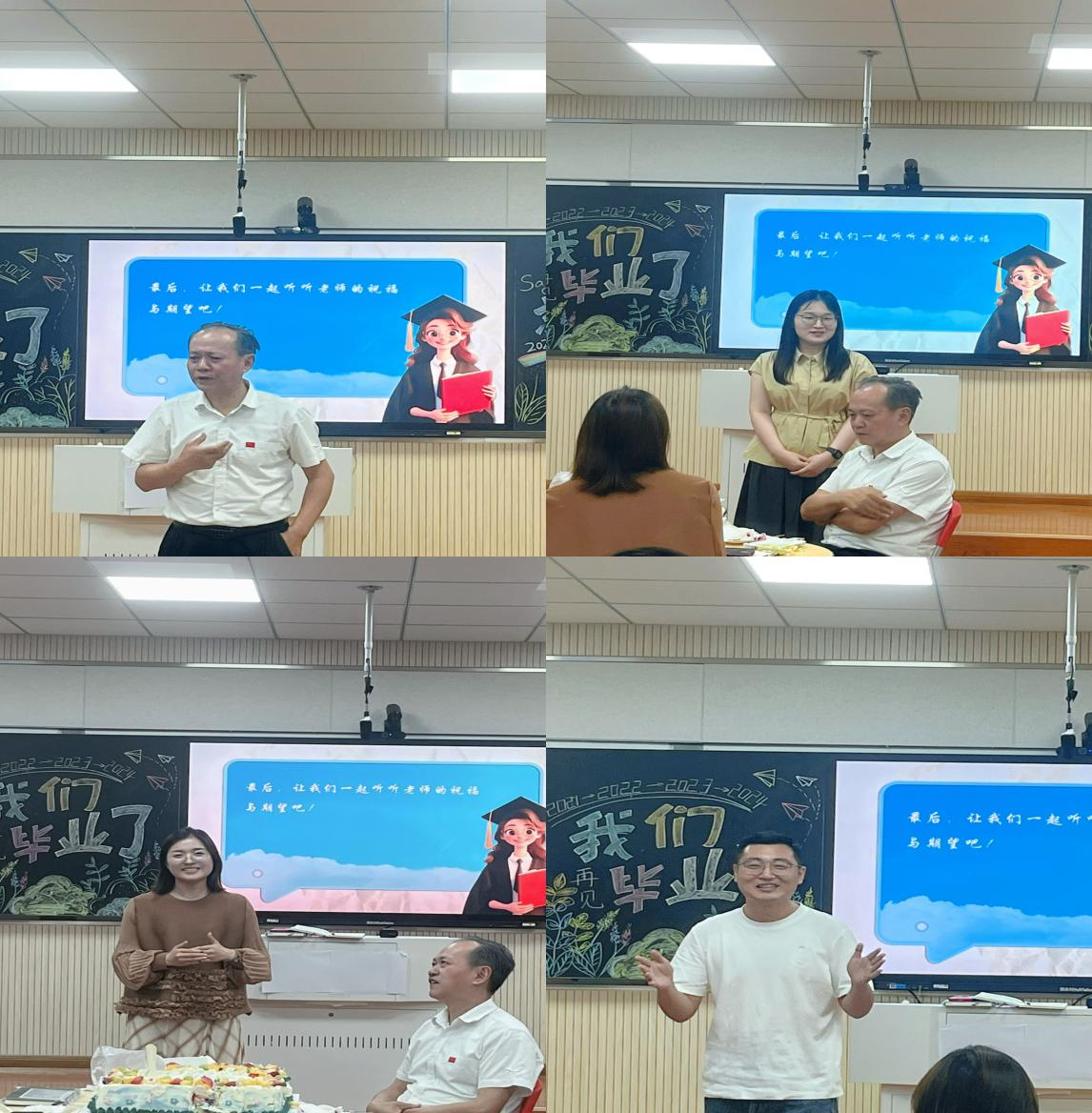 2025年6月12日晚上,365英国上市官网2025届小学教育(复合型)本科毕业生在田楼8606教室召开毕业话别会。阮成武、陈娜、陈晨、肖龙及辅导员赵茜等老师亲临现场,与学子共叙四年师生情。活动以“初印象·同奋斗·展未来”为主线,通过互动游戏、真情告白、师生寄语等环节,为四年大学时光画上圆满句号。