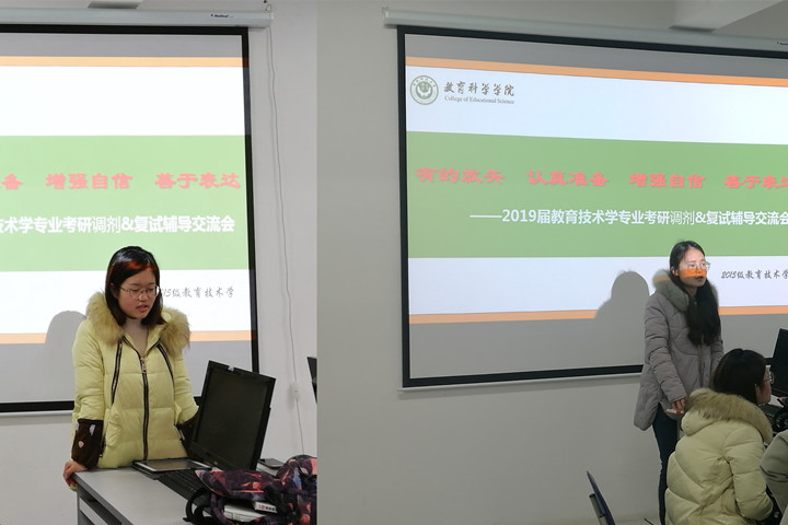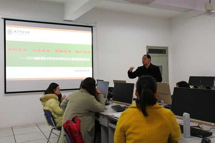 本网讯(教科院 冯秦娜/刘和海)为帮助考研学生更好地应对即将到来的复试环节,2019年3月5日下午,教育技术学专业在田楼b座515室举行了教育技术学研究生考研复试及调剂的辅导交流会。刘和海老师及2015级教育技术学专业考研达线的同学参加了辅导会,会议由刘和海老师主持。