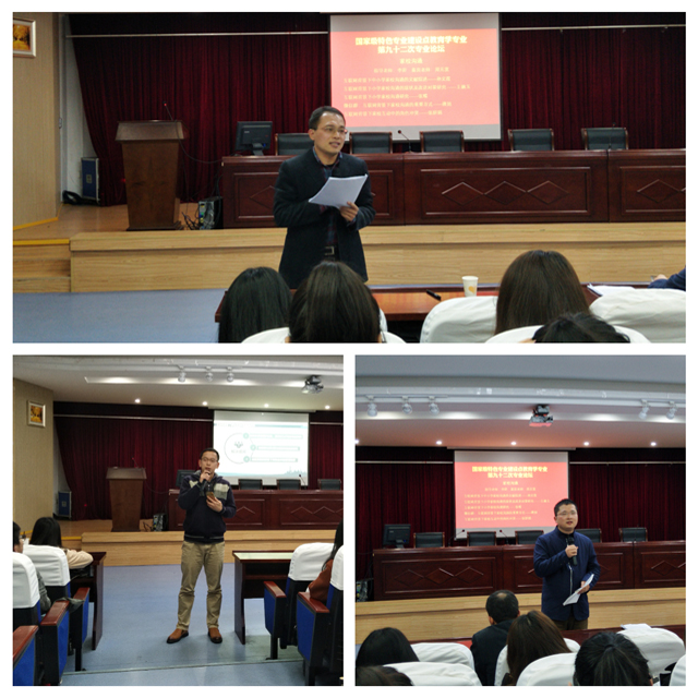 本网讯(文/徐如瑾 图/徐如瑾)国家级特色专业建设点教育学专业第九十二次专业论坛于2018年12月2日18点30分在图书馆报告厅举行,参与本次论坛的有教育学专业16、17、18级全体本科生。此外,莅临本次论坛的还有王婉玉小组指导教师李卯老师和嘉宾老师周元宽老师,专业负责人徐赟老师也参加本次论坛。17级任旺旺为本次论坛的主持人。