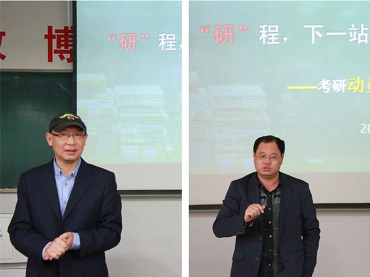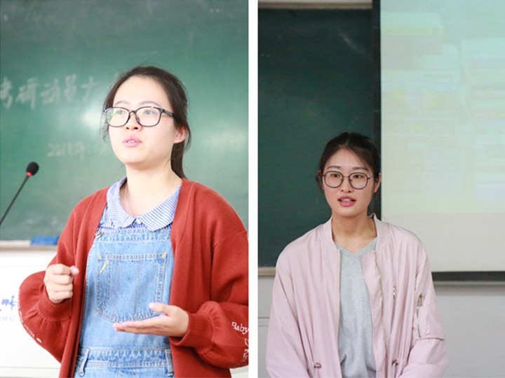 本次考研动员与辅导交流会分三部分进行。首先由两位在读研究生分别分享各自考研过程中所经历的学习经验与技巧,以便为预备考研的同学更好地提供经验与方法。如胡旭珽同学就考研的科目学习计划安排,内容选择以及具体复习过程等做了详细的介绍与分享,并强调了计划和坚持的重要性;而孙岩岩同学则由身边具体的事例,告诉大家考研是一件非常辛苦的事情,贵在坚持,除此之外,摆正自己的心态,坚持自己的理想,选择一位志同道合的研友,相互鼓励,共同进步,为研途中的艰辛增加动力与支持提供了很好的案例与参考。
