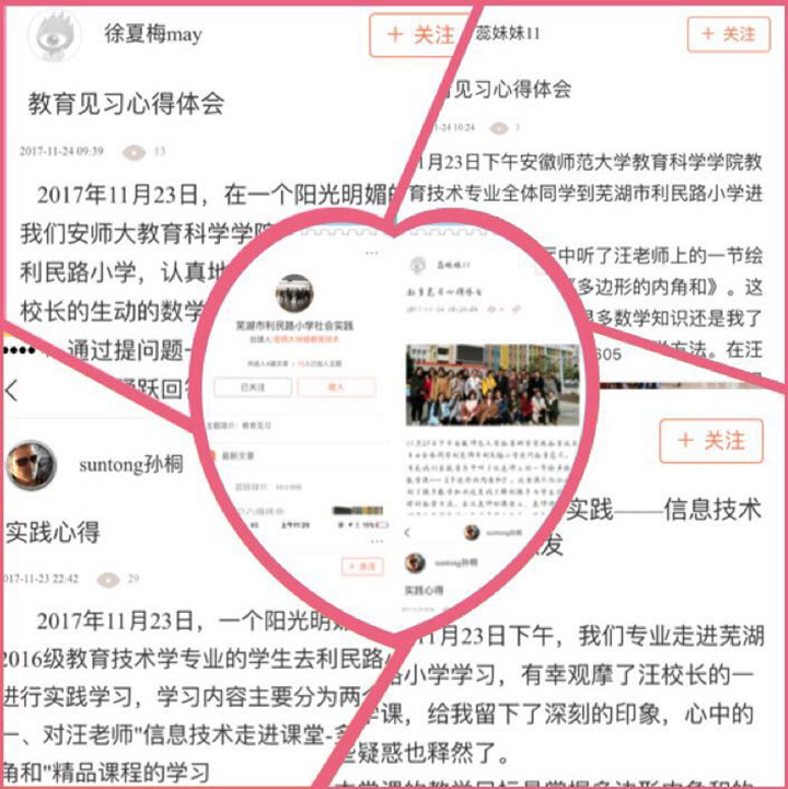 本网讯(教科院 常欣)1123日下午,我院教育技术学2016级本科班全体同学在系主任张克松老师和协同中心信息技术实验区指导专家陶佳老师带领下,来到安徽省教师教育协同创新中心信息技术实验学校芜湖市利民路小学开展教育见习活动共同观摩了利民路小学汪宏副校长的小学五年级数学《多边形内角和》教学公开课。