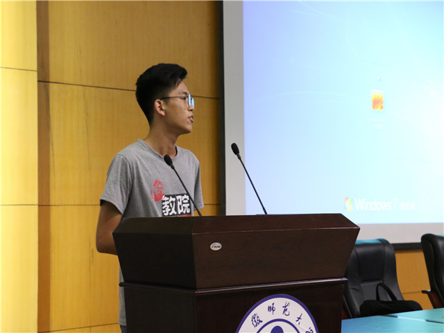 张如华书记首先对全体新生表示祝贺,祝贺大家能够顺利完成高中学业,来到安徽师范大学教科院这个大家庭,并希望大家在以后的日子里可以继续深造,在大学里学有所成。随后由新生辅导员开始对新生们的正式班会。在对学校的简单介绍后,谭茹轩辅导员就新生入学之后户口迁移、保险、档案、团组织关系、助学贷款、贫困生认定等问题一一向新生们作了详细的介绍,同时也解读了学校的相关政策信息。随后重点介绍了安全问题,进行了包括人身安全、用电安全、宿舍安全、财产安全在内的安全教育,告诉同学们要注意寝室生活问题,禁止使用违规电器、按时归宿,注重寝室生活卫生等。辅导员对大学的生活与学习也作出了简要说明,在大学依旧是学习为主,然而在大学里有更加的自由的环境,这就对同学们的自律要求更高了。同时独自的生活对于某些同学可能是一个挑战,但这也是各位同学走向成熟必不可少的一步。在班会的最后,由老生代表,2015级应用心理学张照辉同学为在场的新生提供了自己学习和生活经验,同时作为院学生会会长的他,也为同学们简单介绍了学生会的情况。