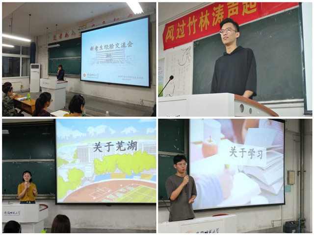 活动伊始,老生代表首先介绍了安师大图书馆、食堂、情人坡等校园活动场所,以便新生更快适应校园生活。张照辉向大家讲述了如何处理学习和工作的关系,抛开“学习不够,学分来凑”的思想,坚持做一些自己感兴趣的事!宋国健介绍了学校的奖学金制度,并就鼓励大家在不耽误学习的前提下多参加社团活动。夏莲香,张磊强调了寝室用电安全与卫生。随后在 “新生答疑环节”,老生代表认真答疑解惑。交流会还设置了“梦想时光机”环节,新生将一年后想要的自己写在卡片上,一年后再发还给大家,希望大家一年后依然能够不忘初心。