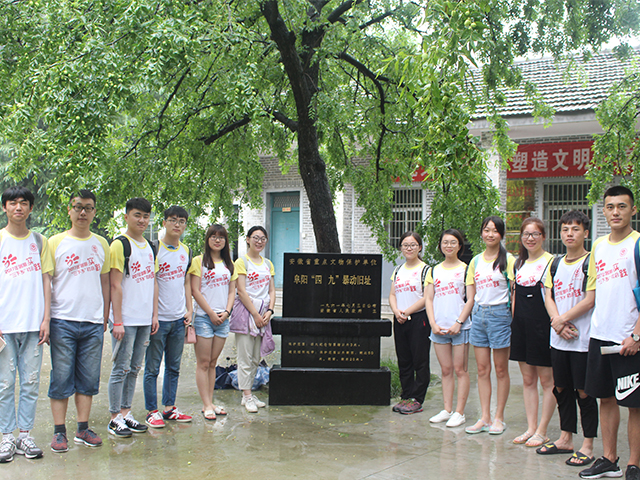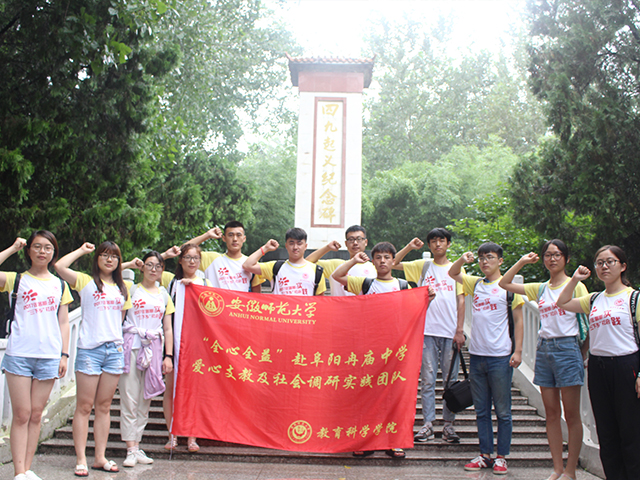 本网讯(教科院 黄玉绒 丁如)微雨东来,凉风习习。为促使当代大学生更好地传承战争时期人民英雄的伟大奉献精神,响应国家对青年学生的热切期盼,教科院“全心全益” 赴阜阳冉庙中学爱心支教团队12名队员在阜阳市颍东区冉庙中心学校校团委书记高川老师的带领下,于716日上午到达阜阳“四?九”起义纪念馆开展了以“缅怀先烈,面向未来”为主题的红色之旅。