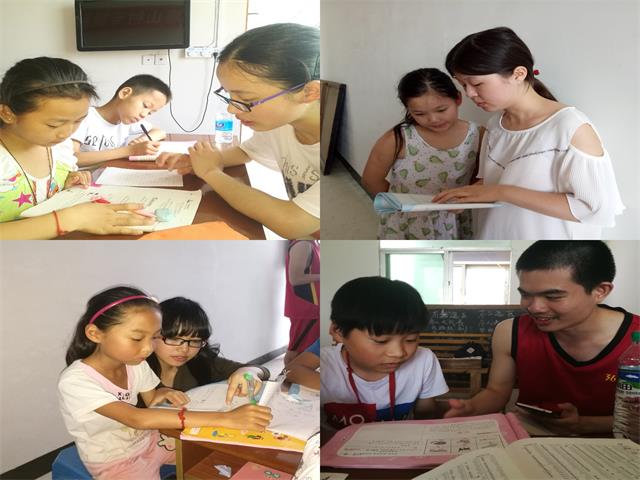 2017年6月26日,团队来到明光市嘉山村开展志愿支教服务活动。在为期12天的支教中,队员们帮助嘉山村的孩子辅导暑假作业,解决课业上的难题。“老师,你快来,我有一个问题。”课堂上学生们踊跃举手向志愿者询问课业难题。“看到学生难题被解决时露出的笑脸,我感觉我来到这儿支教是值得的”,队员樊诗丽这样感慨道。放学后家长们不能及时赶,队员们就继续在教室里辅导学生作业,与学生一起等待家长。有些学生家长由于工作繁忙无法接孩子,队员们就牵起学生的手送他们回家。“老师,我妈妈今天不能来接我了。”“来,老师送你回家。”这样的对话经常发生在教室里。