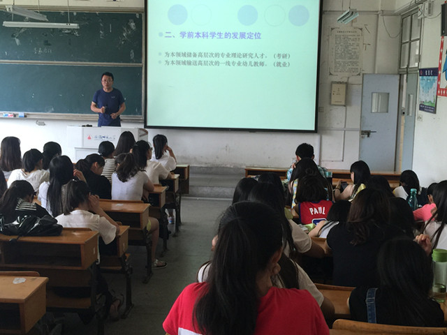 首先,张更立为同学们剖析了当前学前教育专业毕业生的就业形势,告诫同学们要确立好从业方向,打好人生的第一张牌,随后张老师又为同学们讲解了专业学位研究生与学术型研究生之间的区别,最后,就如何做好考研备考,张老师结合自身经历,提出了5条宝贵意见:1、考量自我,作出选择;2、整体斟酌,选择院校;3、详细查询,弄清考试内容;4、端正态度,树立信心;5、做好时间规划,稳定推进学习进程。这其中,张老师重点在“整体斟酌,选择院校”上为大家进行了辅导,结合往届考研情况,尤其是院校填报情况,张老师一再强调:避免“扎堆”、内部“相杀”。随后更是为大家悉数列举了该专业的强优势院校达20多所。这对苦于选择院校的考研学子来说,无疑提供了“柳暗花明又一村”的愿景,由此更加笃定自己考研的决心!