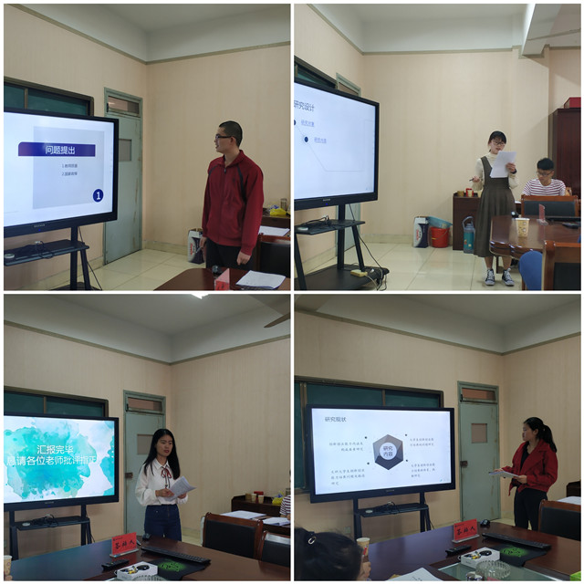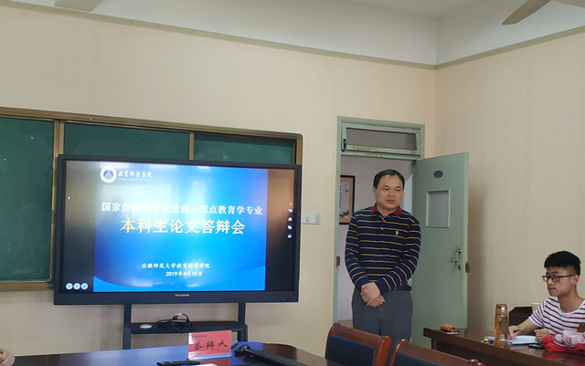 参加答辩的同学早已准备就绪,等待大学期间最后一场实战性的“考试”。他们在答辩前都经过了论文开题、中期检查、最终论文审查等几个阶段充足的准备,在答辩过程中以图文并茂的形式,结合ppt阐述自己论文的选题目的、理论框架、研究方法、及其理论意义和实际意义。论文答辩中,张皓南结合自己担任过本校校长助理的工作经验,谈论《现代大学制度下大学生参与高校民主管理研究》;滑凤试以解释现象学为研究视角,探讨《乡村校长对“银龄讲学计划”的政策期待分析》;任慧仔细梳理了《论语》中关于孔子君子观的陈述,为在座听者再现了《孔子的“文质彬彬”君子观及其教育意蕴 》;徐玉联系《国民旅游休闲纲要(20132020)》、《关于推进中小学生研学旅行的意见》等政策文件,试论《研学旅行如何更好地让“学习”发生?》;朱小倩同学则以芜湖市F小学为例探讨《小学语文教师教学反思能力研究》。在随后的大学生创新创业训练计划结题答辩会中,8位汇报人依次向在座答辩老师和同学陈述小组的项目进展情况。过程中答辩学生通过PPT展示,分别就项目研究的背景和意义、项目内容、创新点分析和研究进度安排等方面做了详细介绍,准备充分,ppt制作精良,汇报内容充实,回答思路清晰,给与会学生提供了较好的示范作用。