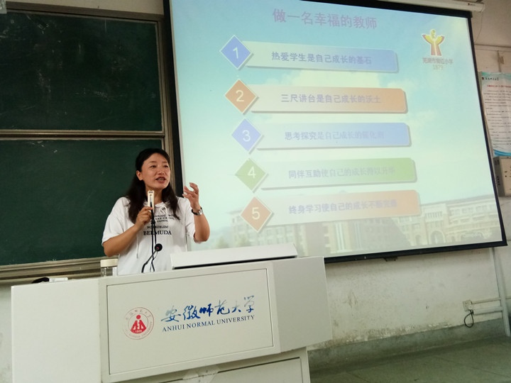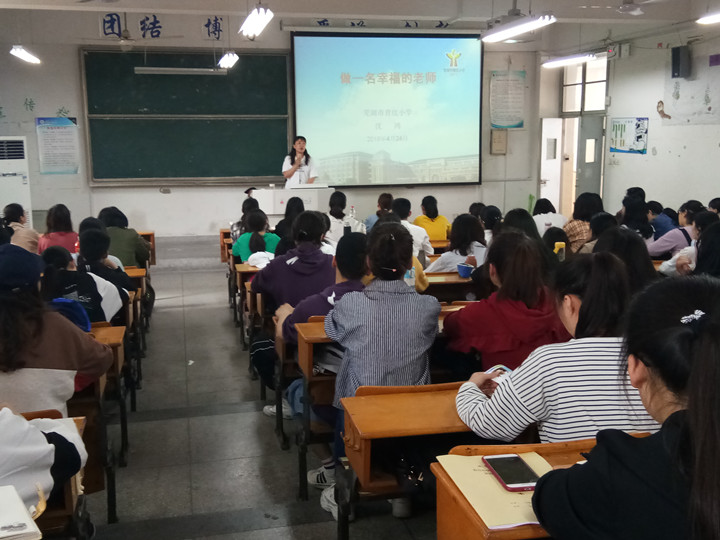 为了成为一名幸福的教师,沈老师提出更高的要求。作为一名教师,心中必须先要充满阳光,然后才能把这份阳光播洒到别人心中;要舍得在学生身上花时间,要敬业,有正气,决胜课堂,服务至上,要让孩子因我们而幸福!最后,沈老师还对同学们寄予希望:作为教师要多读书,树立终身学习思想;苦练教学基本功,要敢于勇挑重担,要爱岗敬业。教师的幸福,镶嵌在每一个坚守的日子里;教师的幸福,体现在每一个创造的日子里;教师的幸福写在每一个平凡的日子里。在感恩中体会幸福,于幸福中获得力量,用这份幸福的力量撑起教育的明天。沈老师通过叙述自身的经历,告诉我们:面对挫折时要永不言败,只有经历挫折才能成长,成长不怕失败,成长不言放弃!