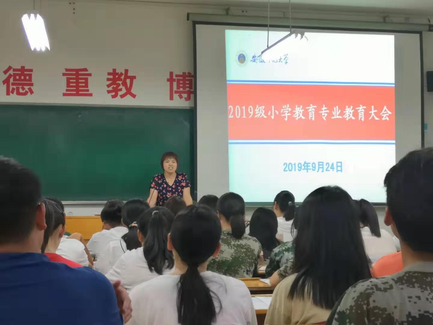 本网讯(教科院 彭晓蕾 王诗文)9月24日晚,365英国上市官网小学教育专业的新生见面会于田楼8401教室举行,2019级小教导师王芳、专业指导教师陈娜,辅导员莫大贡,导生汪胜男,王心语等以及2019级小学教育全体新生参与此次会议。