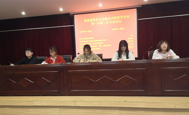 本网讯(文/唐旭 图/王越)国家级特色专业建设点教育学专业第102次专业论坛于2019年10月27日19点在图书馆报告厅举行,参与本次论坛的有教育学专业17、18、19级全体本科生。此外,莅临本次论坛的还有于硕小组指导老师周元宽老师和嘉宾老师滕曼曼老师,18级黄跃程同学为本次论坛的主持人。