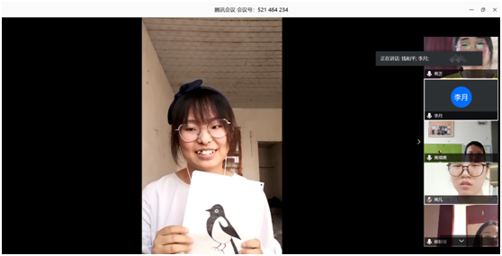 指导会开始前一天,王路曦老师将各位同学的教案提前发送给两位专家。在视频会议中,专家参考同学们的教案,观看同学们的现场教学。对于同学们的表现,两位老师予以点评。肯定了同学在语言、教态、材料准备等方面的表现,同时也指出了部分同学在教案撰写上的不足。余捷老师特别强调,在教学目标的撰写上,应从幼儿的角度出发,同时注意语言应准确精炼,适当删去一些重复、多余的话语;新时代的学前教育要强调活动与生活的融合性,不能仅仅将课上成想象中的模样,要根据儿童实际的身心发展规律和他们的生活经验来进行活动的设计。钱和平老师指出,在语言活动中,教师作为引导者,更重要的是引导孩子们说出自己的想法和观点,让孩子有充分表达自己的机会,以此来锻炼幼儿的语言表达能力。