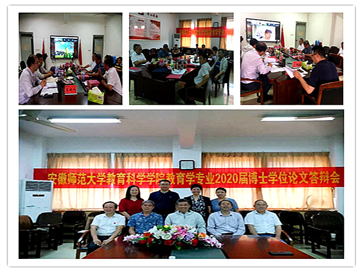 本网讯(教科院)2020年6月11日,教科院教育学专业博士点迎来了首届博士生答辩。因处疫情时期,本次答辩依托腾讯会议平台,采用线上线下混合方式进行答辩。答辩邀请了南京师范大学博士生导师缪建东教授、顾建军教授,清华大学博士生导师石中英教授、上海师范大学博士生导师夏惠贤教授、安徽师范大学博士生导师王世华教授、朱家存教授、阮成武教授、周兴国教授组成了答辩专家委员会。博士点全体导师和博士生通过线下线上方式观摩了此次答辩会。