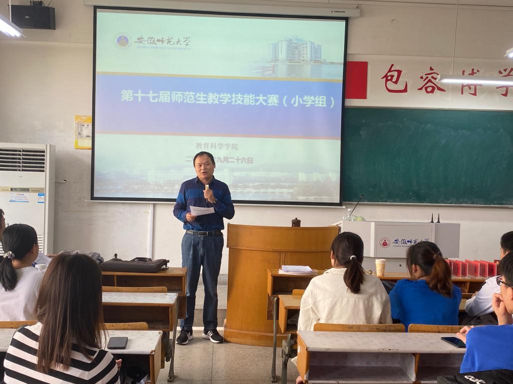 从最初的班选、院选到最后的校赛,每一堂好课都需要经历多次打磨。赛前邀请了芜湖市小学一线优秀教师分别为五个科目的选手进行指导,在教学设计、课件制作、板书设计等方面提出宝贵意见,帮助选手们快速成长。