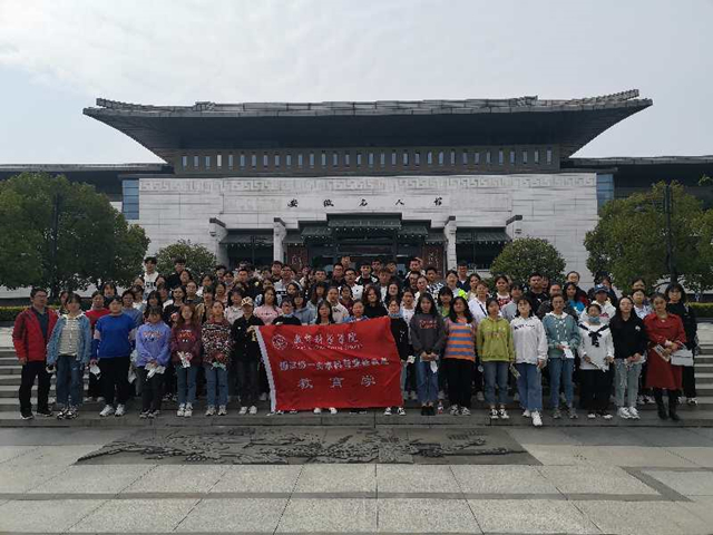 27日下午,教育学专业同学们来到安徽名人馆和渡江战役纪念馆进行参观学习。在安徽名人馆中,同学们领略了具有突出贡献的安徽名人——刚正不阿、执法如山的包拯;“谈笑间、樯橹灰飞烟灭”的东吴儒将周瑜;道家派代表人物老子、庄子;“知行合一”的著名教育家陶行知等。同学们纷纷感叹,安徽是物华天宝、人杰荟萃的好地方,我们为生活在安徽而自豪。随后,教育学专业同学前往渡江战役纪念馆,学习渡江战役历史,感悟革命先烈精神。在导游的带领下,同学们不仅学习了渡江战役这段辉煌历史,还为谭震林、陈毅、刘伯承、邓小平和粟裕五位领导人的雄才大略与宏伟气度深深震撼。