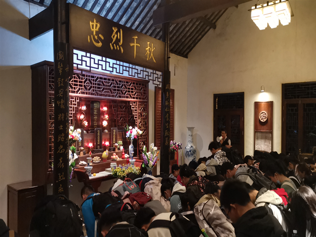 野寨中学不仅通过打造“品格教育”来培养学生良好的品性,还将“抗日阵亡将士墓”作为学校特色爱国主义教育基地。教育学专业同学们跟随讲解员来到野寨中学抗日阵亡将士墓,依次参观了忠烈祠、抗日阵亡将士纪念塔,野寨中学校史馆和范苑声文物馆。野寨中学以悠久的文化底蕴,深深感染了在场的每一位同学。“品格”教育打开同学们的教育视野,“景忠”文化在同学们心中埋下了忠孝种子。