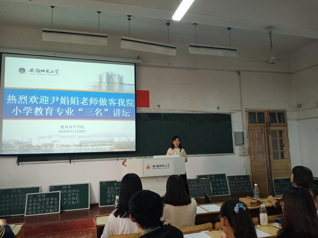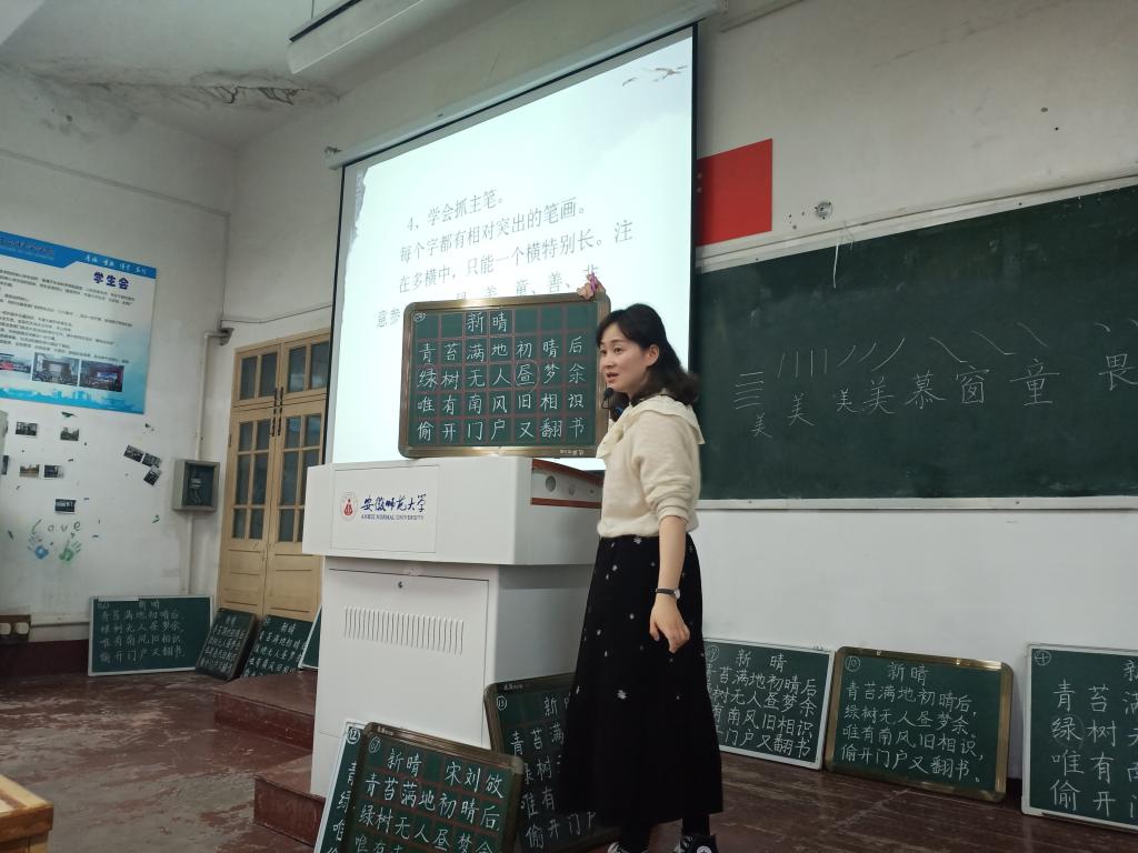 紧张的比赛结束后,为了帮助同学们掌握书法练习的正确方法,小学教育专业负责人王芳主持开展了“尹娟娟老师做客小学教育专业‘三名’讲坛”活动。尹娟娟老师是安徽省书法协会会员,作为一名书法老师,同时也作为小教的学姐,给小教同学们讲了一场生动且有趣的书法课。课上,尹老师强调,书法教育愈加紧迫,想要成为一名优秀的老师,练好书法非常重要。尹老师结合自己的工作经验,针对比赛中同学们的书写状况,归纳出钢笔字、粉笔字书写中存在的问题,并给同学们找到了具体的解决方法,想要写好字,临摹必不可少,其次笔画是基础,控制好速度,注意上下左右结构,学会抓主笔,大小要统一,还要注意书写时捻转粉笔,注意排版,切勿随意涂改。尹老师举一反三,各个击破,将同学们易犯的书写错误和一些易错字的基本笔画都详细讲解,还请了好几位同学上台示范。同学们不仅听得不亦乐乎,而且写的津津有味,原来从前觉得枯燥的书法练习还有这么有趣的一面。