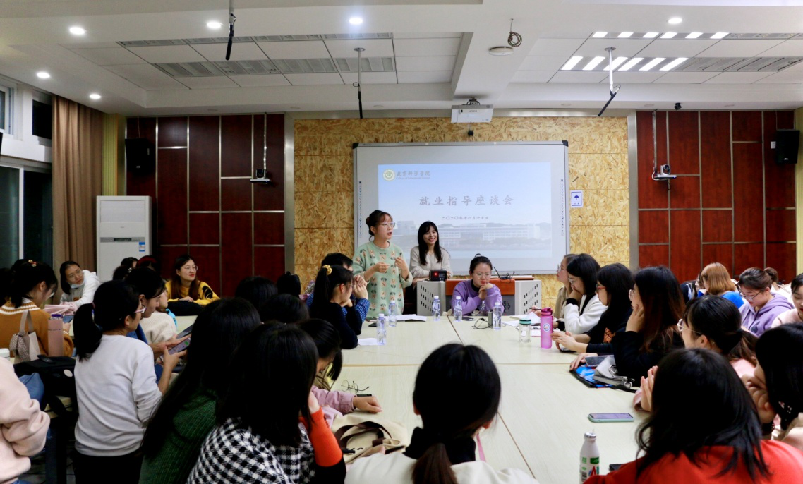分享会上,胡旭珽学姐围绕在校规划、就业理念和安全意识三个方面向同学们提出三点建议:第一,不同职业考察不同技能,因此在校学习期间要积极参与学生工作,发展多方面能力,为以后的就业夯实基础。第二,树立“先就业再择业”理念,增强信心、积极应聘,珍惜面试以及工作机会,在实践中提升自我。第三,注意人身财产安全,增强安全意识和自我防范意识。钱慧学姐以“全面搜集信息,把握一切时机”为主题,对如何收集就业信息、如何备战考试、如何协调毕业和求职的关系等方面进行了详细指导,并建议同学们以列清单的方式,记录下求职各项时间节点,有条不紊、循序渐进。江英学姐强调“以考会战,主动出击”,鼓励同学们多参与、多锻炼、多总结,加强沟通能力,培养团队协作能力、提升教育教学技能。她希望大家今后在任何岗位上都要树立终身学习理念,持续发展。张高亮学长强调在求职面试过程中要时刻注意仪表仪容、时间把控、肢体回答方式,并鼓励同学们,纵然未来遇到坎坷,也会山重水复疑无路,柳暗花明又一村。