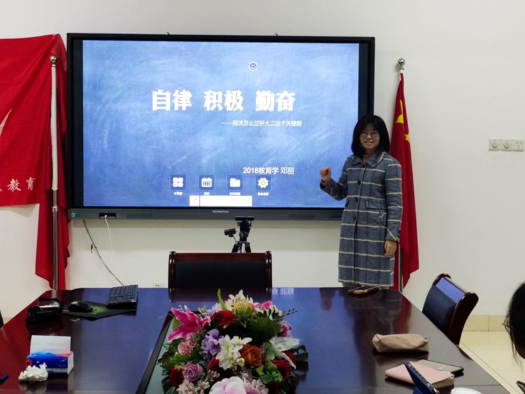 本网讯(文/张思雪 图/徐美宣)为了指引学生发展前景,做好学习生涯规划,2020年11月24日晚,2019级教育学专业于田楼B座308会议室顺利开展学习经验交流分享会。本次会议采取线上线下相结合的方式,特邀2015级教育学毕业生张皓南、2016级教育学毕业生肖玉业和高雪迎、2017级教育学陈丹阳、2018级教育学邓丽等五位同学分享学习经验,为2019级教育学本科生的生活、学业等方面指点迷津。