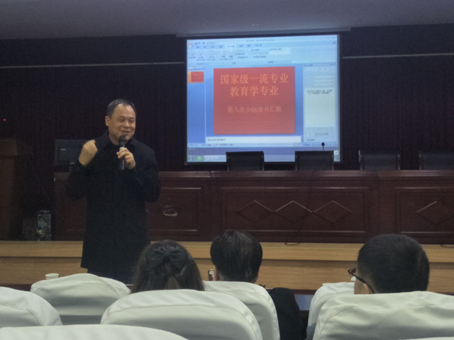 本网讯(文/魏珍 徐美宣 图/张思雪)教育学专业的学习小组活动是《教育研习》课程的重要环节,也是本专业特色实践课程的重要组成部分。在过去一年中,各个小组充分发挥教师指导作用和学生的主人翁意识,积极开展小组读书会、教育政策学习、期刊学术论文研讨、参与教师课题研究、开展专业特色实践课学习等特色活动,并取得一定成果。2020年11月29日晚,国家级一流专业建设点教育学专业第八次小组活动汇报会在图书馆报告厅举办。莅临本次小组活动汇报会的嘉宾老师有陈娜老师、段兆兵老师、韩建涛老师、江珊老师、金维才老师、李宜江老师、柳丽娜老师、路宝利老师、石亚兵老师、滕曼曼老师、王芳老师、辛治洋老师、薛卫洋老师、杨晓奇老师、姚运标老师和尹建锋老师,18、19、20全体本科生到场聆听,19级教育学徐美宣为本次汇报会的主持人。