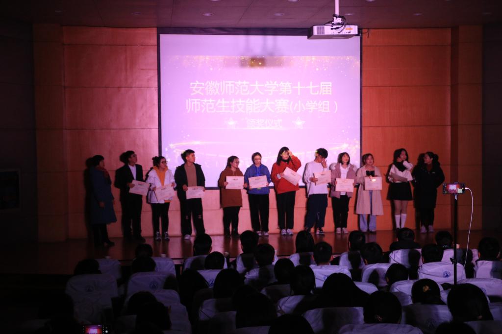 此次音乐展除了精彩的演出外,举行了安徽师范大学第17届师范生技能大赛(小学组)颁奖仪式,小教学子在本届师范生技能大赛中取得优异成绩,学院领导和老师给获奖同学颁奖并合影留念。此外,还进行了激动人心的抽奖环节,在主持人、礼仪组和工作人员的安排下,老师、同学有序上台抽奖、领奖并合影留念,礼物虽小,但传递着冬日温暖。