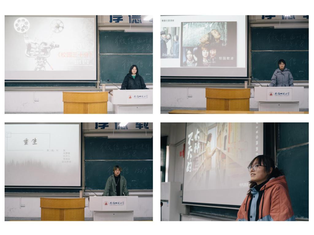 本次比赛全体参赛同学按照小组顺序进行汇报及作品展示。按照分组,组内代表依次上台对组内的作品进行汇报讲解,组员需要阐明作品的立意来源、拍摄手法、构图技巧及意义展现,随即展示自己组的影视作品,评委、观众在台下当场进行APP打分。作品评分主要采用“评委+观众”现场打分的方式。最终,第一组《校园三十分》、第三组(1)《青春需要温暖》、第六组《年少有为》荣获一等奖,第四组《勒马》、第八组《不灭的火种》、第二组《重生》荣获二等奖,第七组《起风了》、第三组(2)《寻光》、第五组《相机杀手》荣获三等奖。
