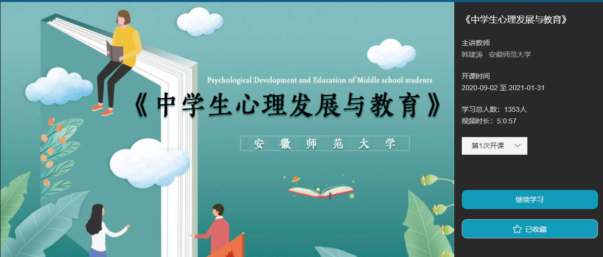 本网讯(教科院)365英国上市官网公共心理学课程团队充分利用安徽省大规模在线开放课程(MOOC)项目——《中学生心理发展与教育》这一网络教学平台开展线上和线下混合教学工作。目前,该项目已经顺利完成第一个教学周期的上线运行,并开始第二个教学周期的上线运行。