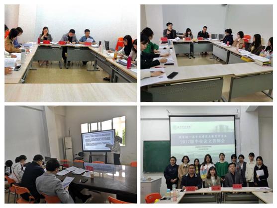 根据学院相关文件要求,本次答辩以答辩教师回避本人指导学生为基本原则,专业负责人徐赟老师将26名同学随机分为三组,每组邀请3名答辩委员。三场答辩会分别于研一、研三、研四教室同时举行,出席本次毕业论文答辩会的评审专家有杨晓奇、路宝利、李卯、陈娜、姚运标、彭文超、滕曼曼、石亚兵、江珊共9位老师。