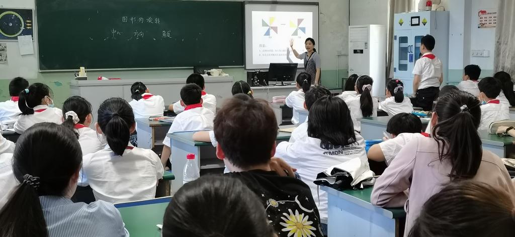 第一节是五年级数学课《图形的旋转》,这节课的课堂教学氛围浓厚,学生的学习兴致很高。教学重点明确,全程围绕“旋转的要素”展开教学,让学生在自主探究中学会数学知识。该老师旨在培养学生的观察、推理、归纳以及探究能力,逐步引导学生学会学习。