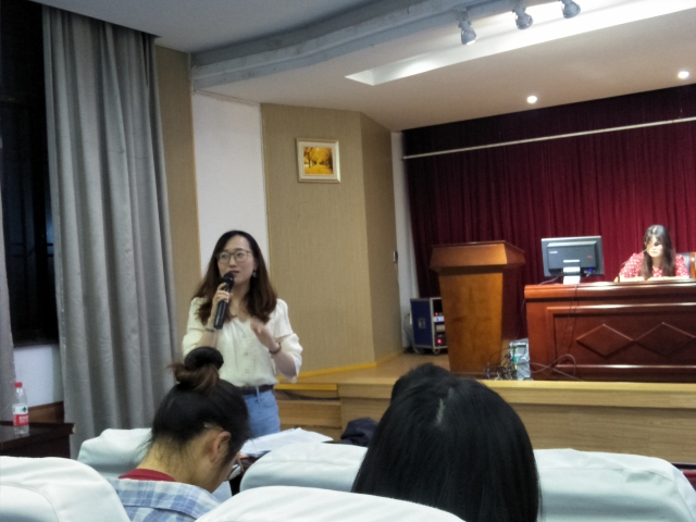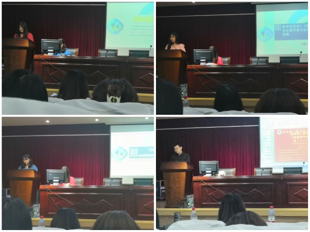 第二位汇报人俞晓雨以《TPACK框架下高校教师信息化教学能力的发展模式与策略》为题,在整合技术的学科教学法知识的框架下,对高校教师信息化教学能力的发展模式进行分析,并结合专业要求提出发展策略。我国已进入教育信息化2.0时代,教育工作者遇到新的挑战与要求,第三位汇报人梁梦菲根据《教育信息化2.0背景下高校教师信息化教学能力发展现状、阻力和策略》题目对相关内容展开研究与汇报。