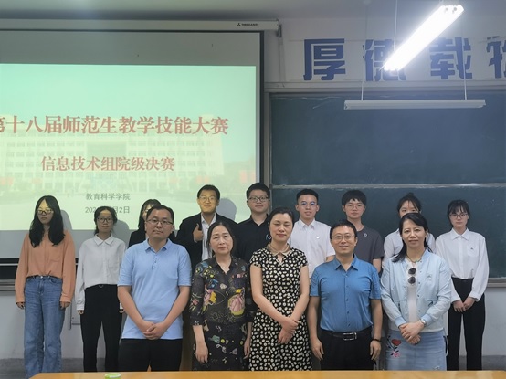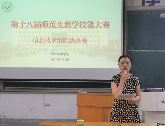 本网讯(教科院 赵小雨 杨滨)6月2日下午14:00,我校第十八届师范生教学技能大赛信息技术组院级决赛在田楼8202教室如期举行。比赛由2019级教育技术学专业本科生龚蕾主持,教育技术学专业负责人杨滨教授,安徽师范大学附属中学信息技术教师李激扬,芜湖市第二十七中学东方龙城校区执行校长、芜湖市中学信息技术教研指导组成员、镜湖区“学科带头人”温蓉,芜湖市华强中学信息技术教师、中学信息技术市教研大组组长胡小方以及教育技术学专业席鹏、陶佳老师担任本次比赛评委。经初赛盲审评选,本次大赛有9位同学进入决赛。2019级、2020级全体学生现场观摩了本次比赛。