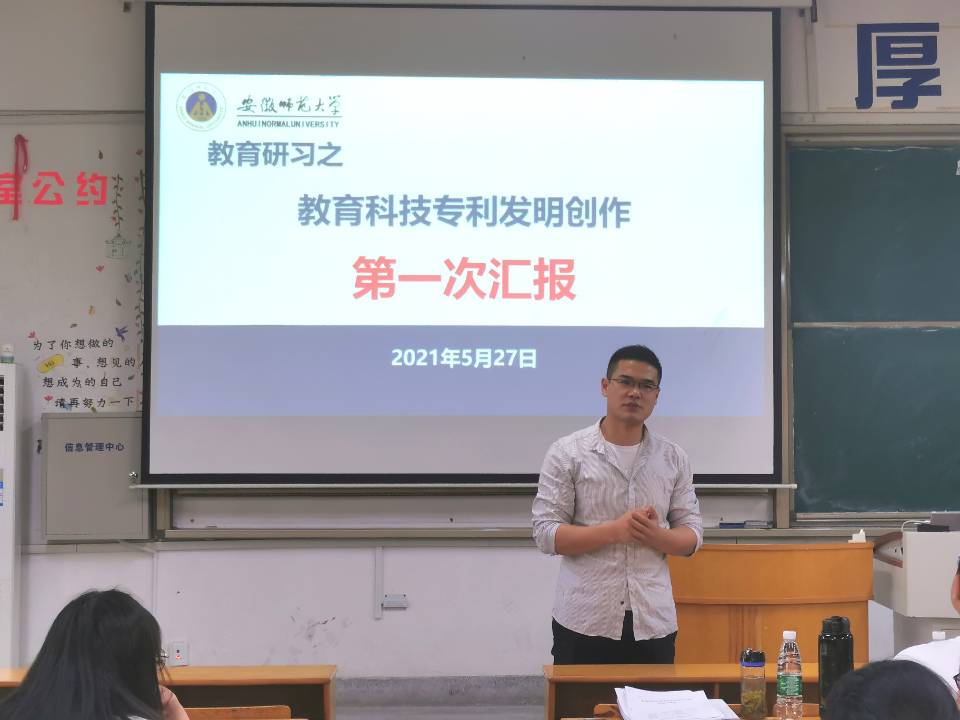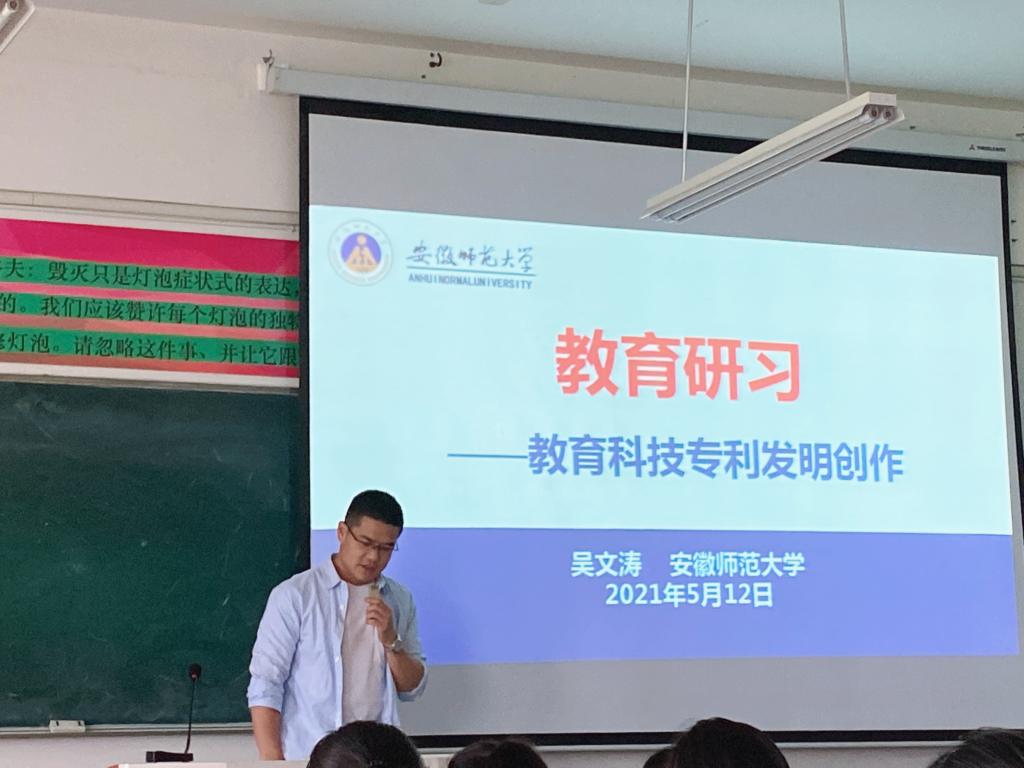 工欲善其事,必先利其器。5月12日下午,2019级教育技术学专业全体同学齐聚田楼8411教室参与讲座辅导,聆听本次教育研习课程的时间安排,熟悉教育科技专利发明创作的相关要求。课程指导教师吴文涛老师向同学们阐释了开展该项研习活动的价值,并通过回答“什么是专利发明”、“学校的比赛要求”与“活动的具体流程”三个问题帮助学生深入了解专利发明大赛,明确任务目标,为后期进行发明创作奠定良好基础。