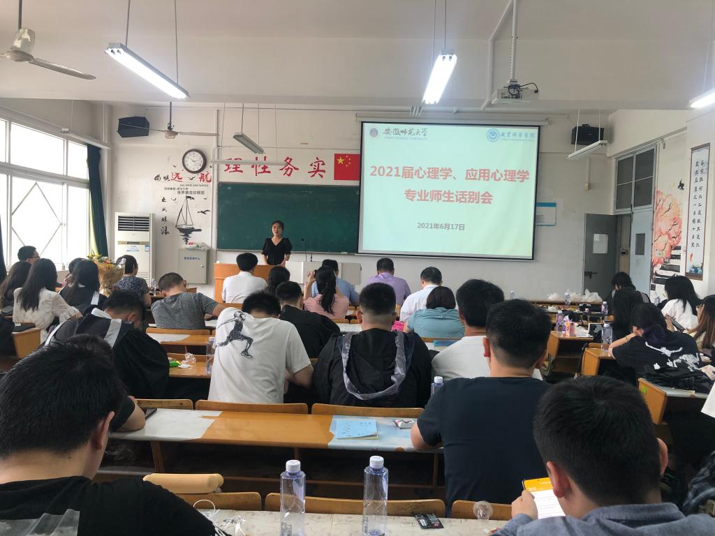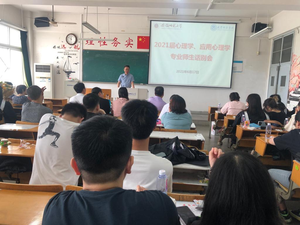 本网讯(教科院 文、图/唐小菲)时光匆匆,毕业临近,为增强师生情谊,欢送亲爱的毕业生们,我院组织了2021届心理学、应用心理学专业本科生的师生话谈会。本次师生话别会于6月17日上午在田家炳楼8203教室举行,由心理学专业负责人韩建涛老师主持。心理学、应用心理学专业的60余名毕业生、学院党委书记方泓,以及心理学专业教师出席了本次活动。