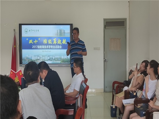 随着袁老师的诗歌朗诵完毕,话别会气氛逐渐进入高潮。老师们接着发言,吴文涛老师以自身为例,告诉同学们不要失去信心,不要停止求学的步伐。他向同学们提出了三个“一”,即一个目标、一个兴趣以及一个对的人,并阐述了这三点对于以后学习、工作、生活的意义。袁晓斌老师随后提出,毕业是一个真正意义上的成人礼,同学们要从心底清楚自己成年人的身份,有着成年人的担当,独立坚强地去面对生活、面对工作。席鹏老师则言真意切地向同学们讲述走出大学校门如何面对工作、面对父母、面对学习、面对对象,为同学们以后的学习、工作、婚姻提供了宝贵的经验。张克松老师以最近流行的“躺平”文化为切入点,以新颖独特的视角向同学们解读了“躺平”的含义,并希望同学们能够去做积极向上的“躺平者”。会议的最后,杨滨老师做总结发言,他引用我国电教事业的开创者南国农先生的一句话:“做人、做事、做学问都重要,做人最重要”,希望同学们在以后的人生道路上谨记这句话,并不断地思考这句话的深刻含义,会对人生大有裨益。