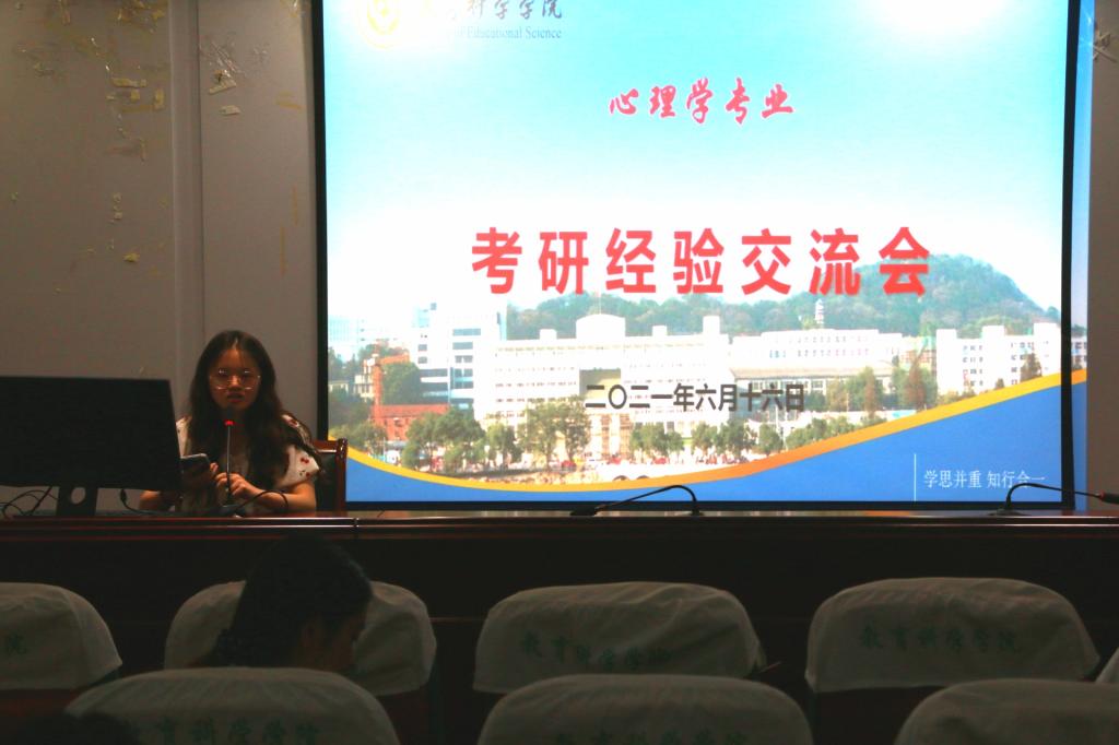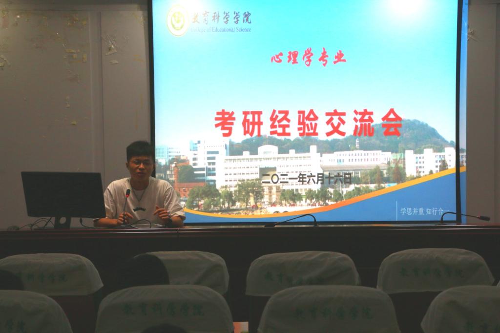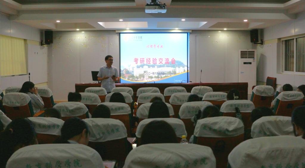 本网讯(教科院 李琴)为增加学生对考研信息了解,营造积极向上的学风,也为心理学专业准备考研的同学提供可借鉴的成功经验并加油鼓劲。6月16日晚,心理学专业考研经验交流会在学院三楼学术交流中心举行。交流会由心理学专业负责人韩建涛老师主持,2017级心理学与应用心理学专业保研、出国读研、考取不同类别研究生的10余位同学与2018级学弟学妹们分享了保研和考研路上的心得体会,并就考研复习的一些宝贵经验进行了交流。