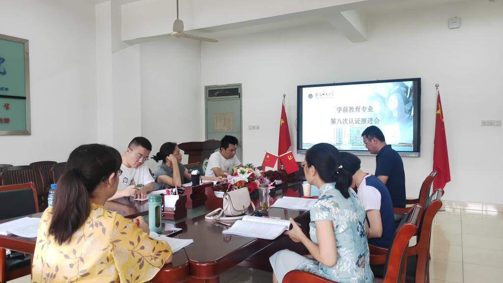 本网讯(教科院 李毅恒 占淑玮)为保障学前教育专业认证自评报告收尾工作的有序进行,2021年8月9日下午14时,学前教育专业在教科院308会议室召开了专业第八次认证推进专题会议,李宜江、张更立、吴玲、赵学菊、张志华、王芬莲、占淑玮、李毅恒等认证推进工作组成员参加本次认证工作会议,会议由学前教育专业负责人王路曦主持。