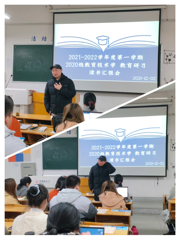 本网讯(教科院 张帅/常珍妮)12月2日18:45,20级教育技术学专业1班在田楼8504举行的2021-2022学年度第一学期教育研习读书汇报会。教育技术学专业老师张克松老师、王清老师、陶佳老师、张帅老师、白茜老师出席了本次汇报会,并对同学们的汇报进行了指导。本次读书汇报会由副班长王圣淇主持。