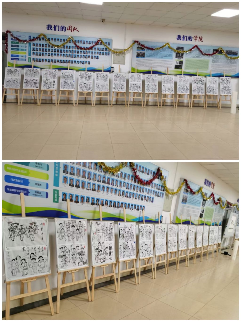本网讯(教科院 程勇珍)2021年12月28日,2019级小学教育专业第五届美术教学成果展在田楼B座一楼大厅成功举行,共展出2019级同学50幅水墨人物美术作品。
