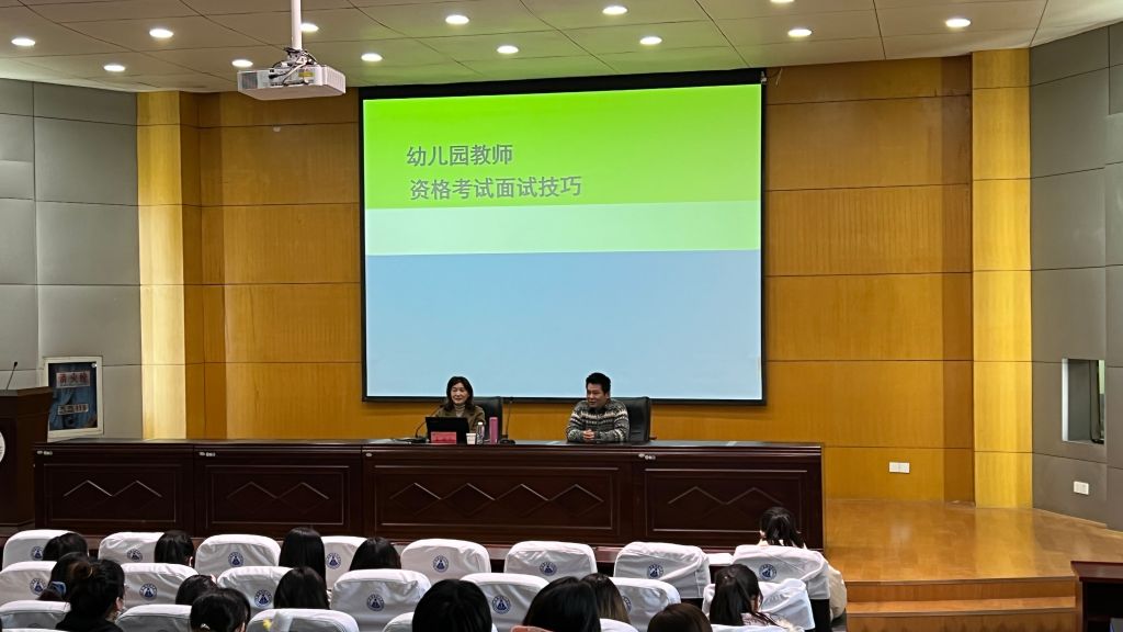 本网讯(教科院 杨心钰)2022年1月3日下午,学前教育专业负责人王路曦及2019级辅导员莫大贡于田楼报告厅组织题为“幼儿园教师资格考试面试技巧”的讲座。讲座特邀教育系陈海燕老师进行专业辅导,2019级学前教育专业同学到场参加了本次讲座。