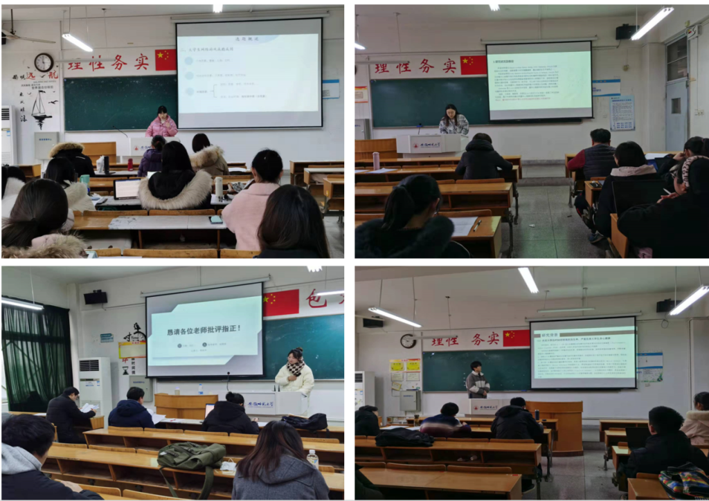 正式汇报前,组长舒首立、彭苏浩、薛红莉和王礼军等老师在各组重申了本科生论文开题的价值与意义,并向同学们明确开题的流程。接下来,每位同学严格按照开题要求,从选题背景、研究假设、研究意义、研究方法、进度安排以及准备情况等方面进行了细致的汇报展示。