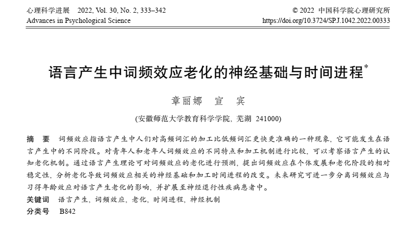 语言产生中词频效应老化的神经基础与时间进程