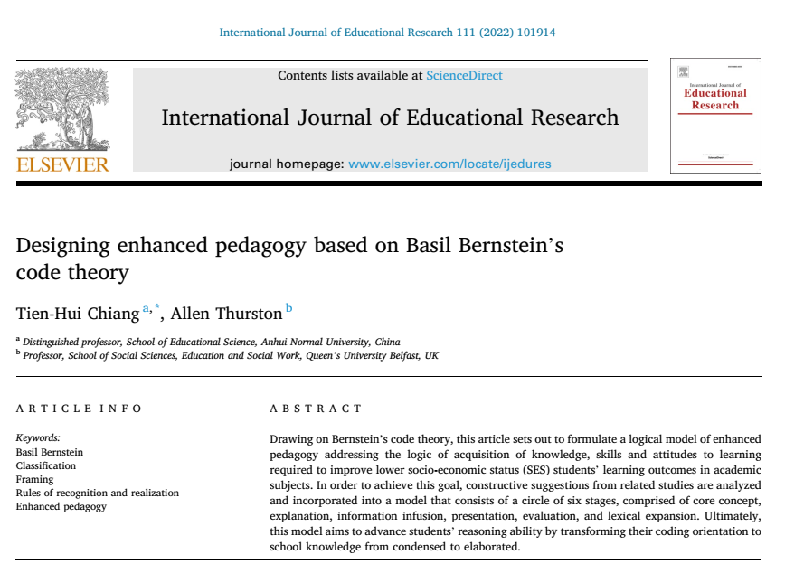 Designing enhanced pedagogy based on Basil Bernstein’s code theory