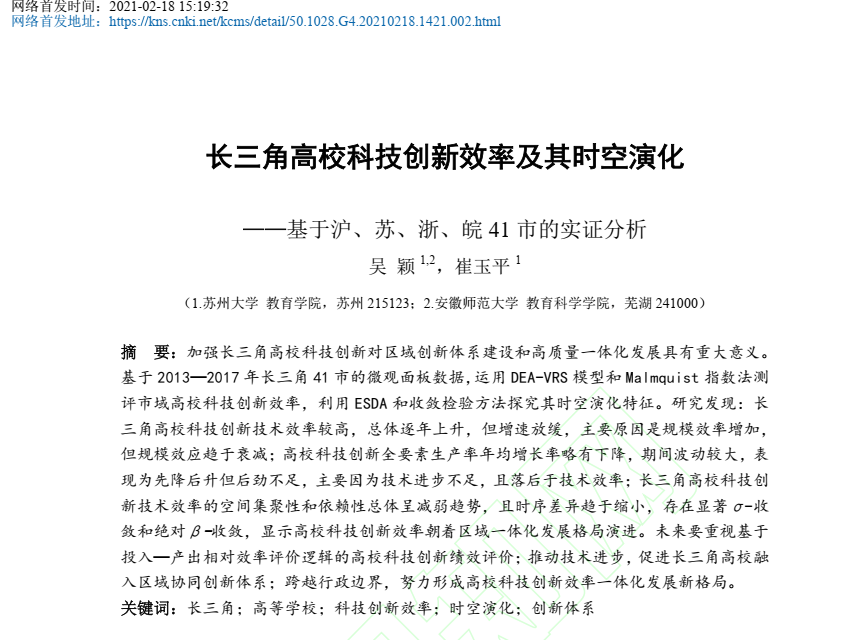 长三角高校科技创新效率及其时空演化 ——基于沪、苏、浙、皖 41 市的实证分析