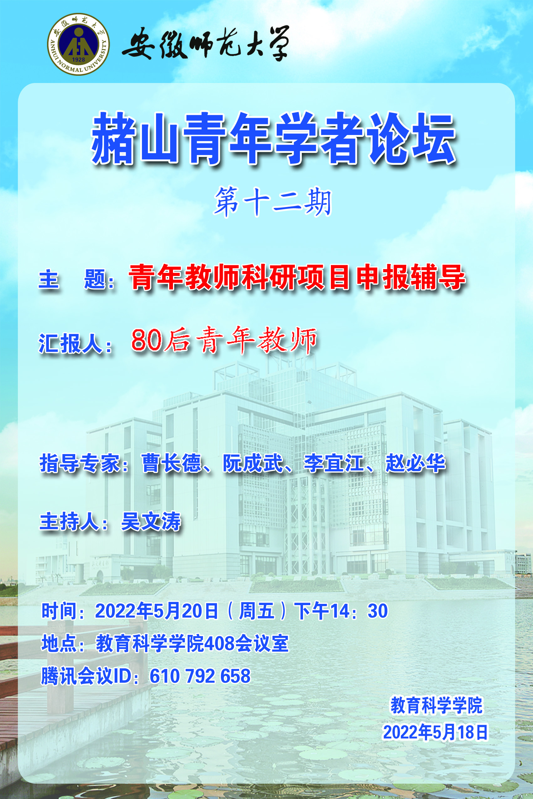 【学术预告】赭山青年学者论坛第十二期:青年教师科研项目申报辅导