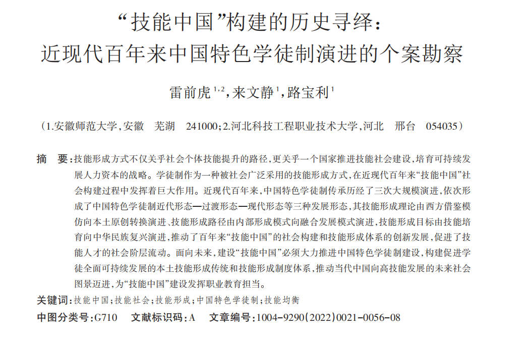 雷前虎、来文静、路宝利:“技能中国”构建的历史寻绎: