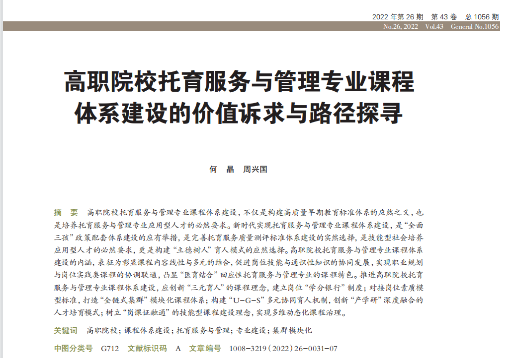 何晶、周兴国:高职院校托育服务与管理专业课程体系建设的价值诉求与路径探寻