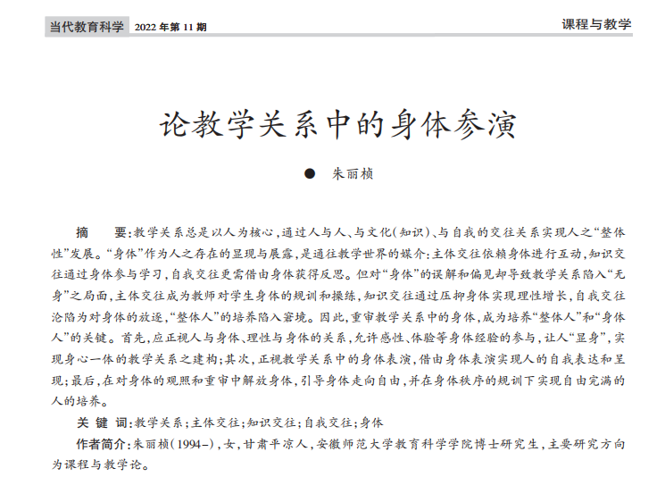朱丽桢:论教学关系中的身体参演