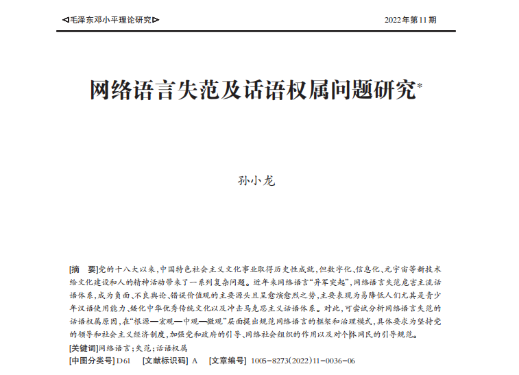 孙小龙:网络语言失范及话语权属问题研究