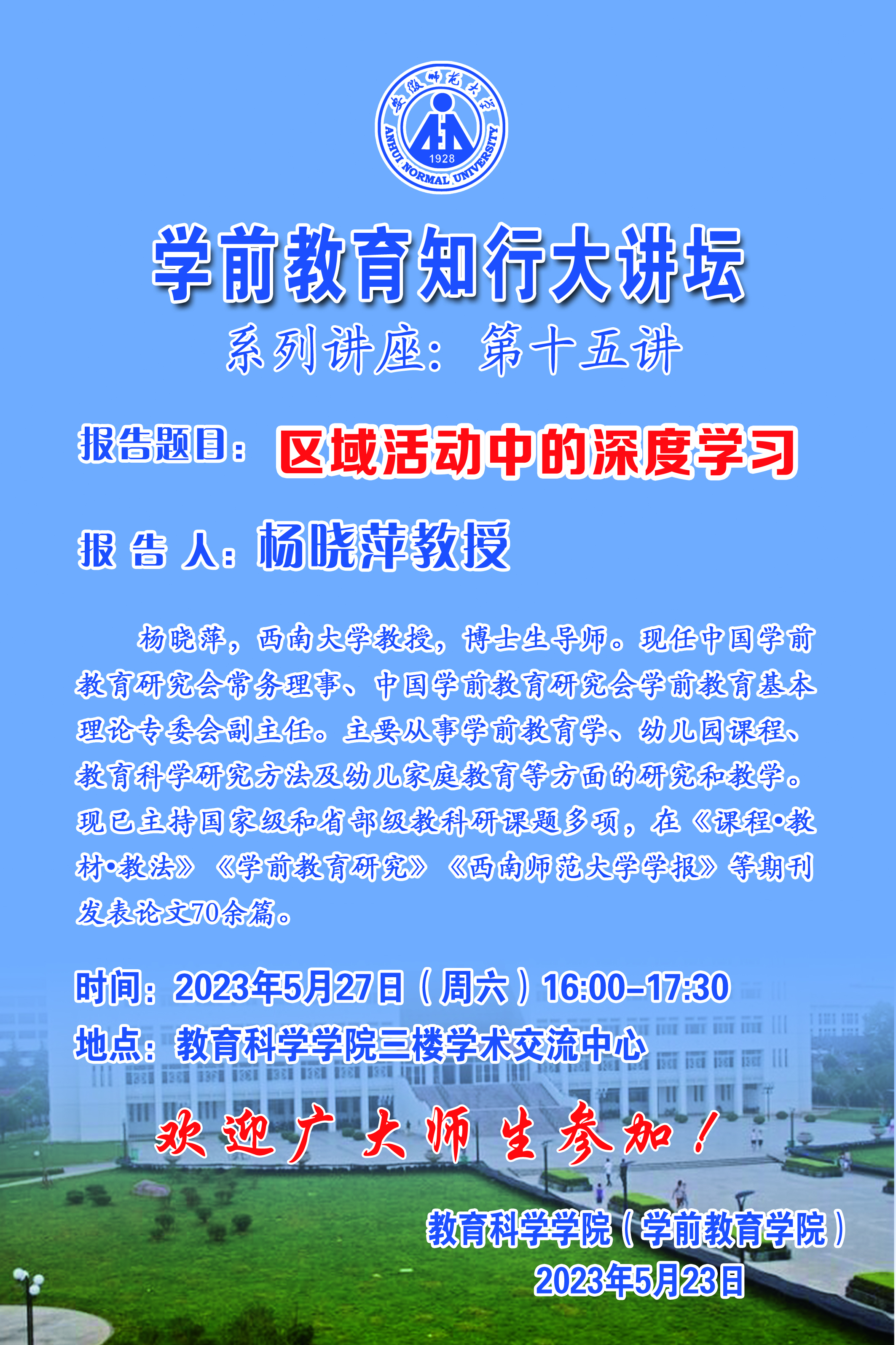 【学前教育知行大讲坛第十五讲】西南大学杨晓萍教授:区域活动中的深度学习