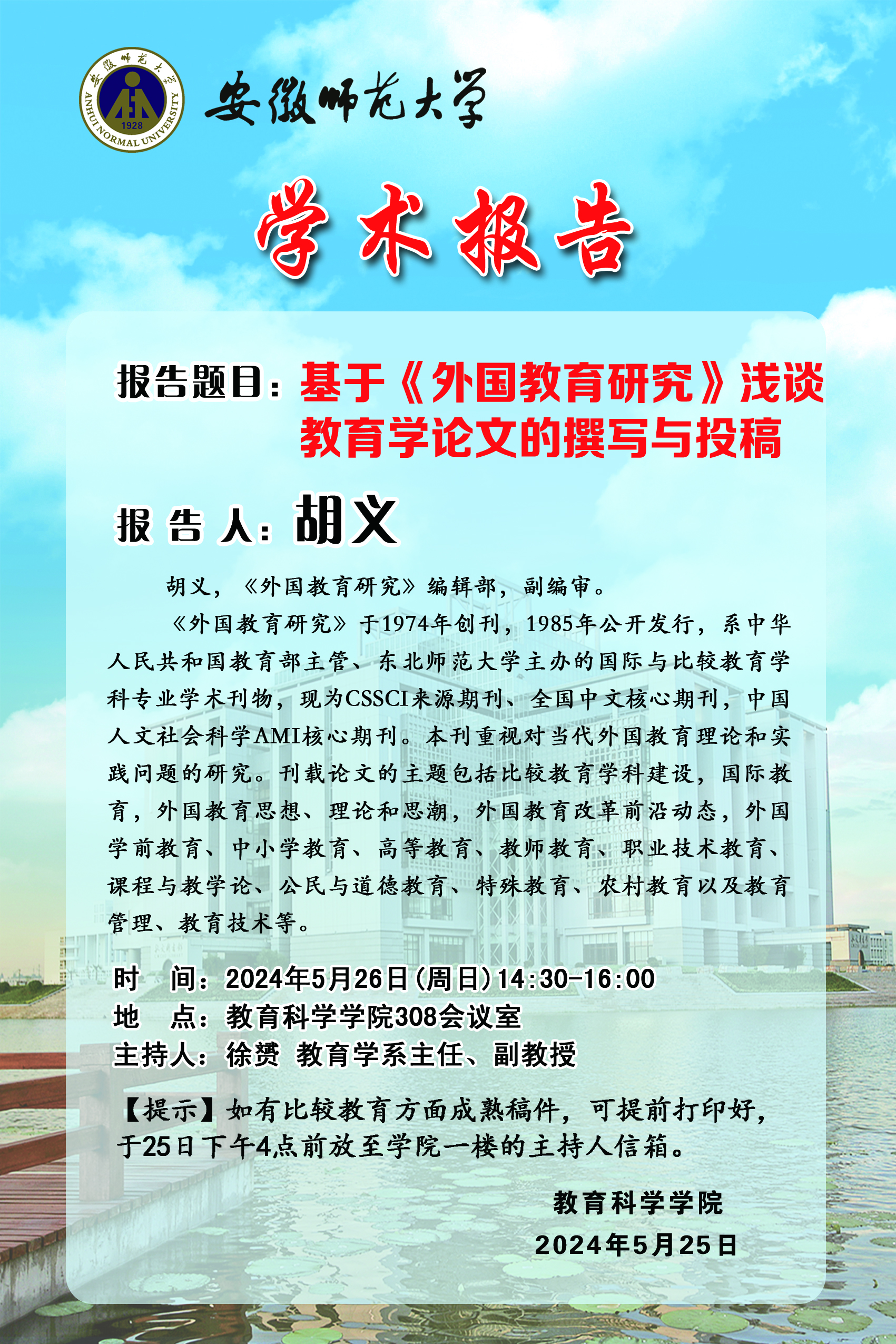 【学术预告】基于《外国教育研究》浅谈教育学论文的撰写与投稿(胡义)