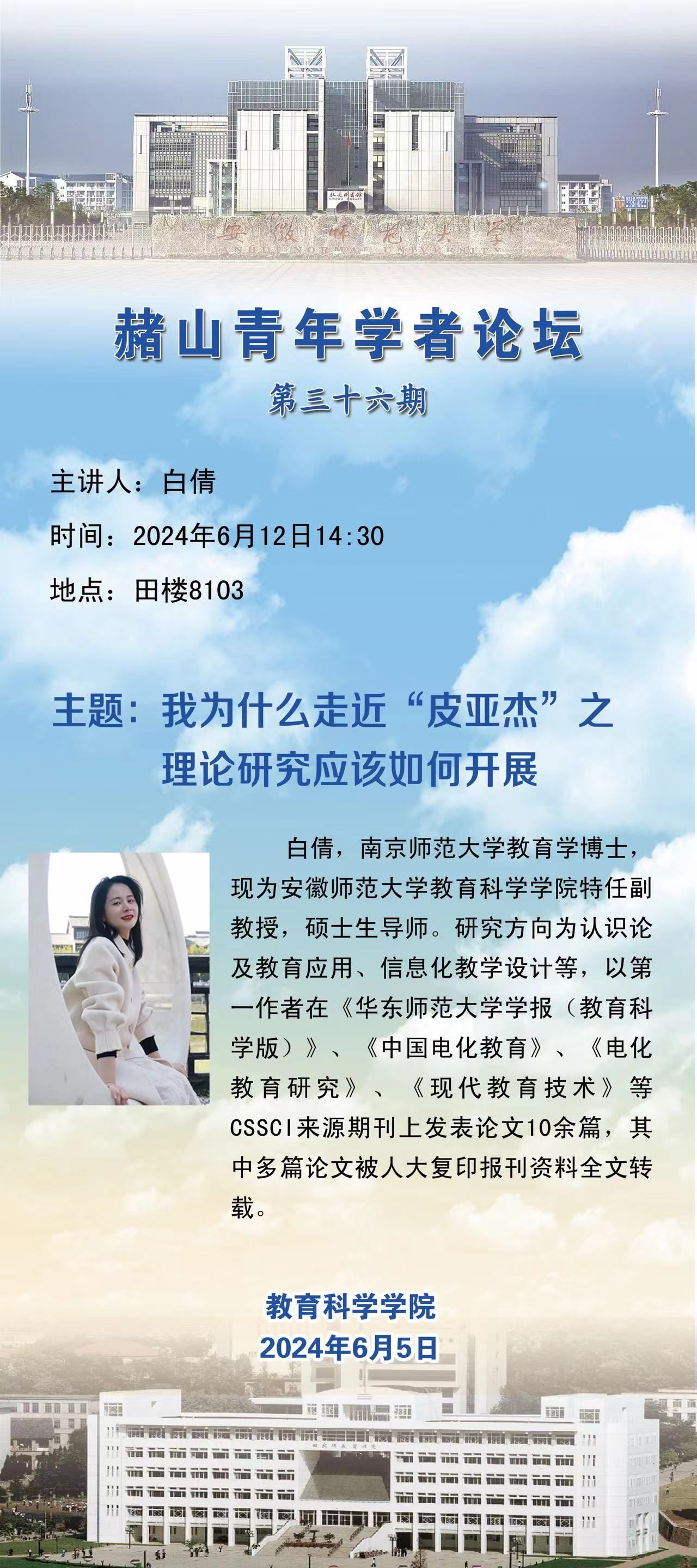 【学术预告】赭山青年学者论坛第三十六期——我为什么走进“皮亚杰”之理论研究应该如何开展(白倩)